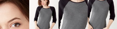 30-single 100% combed and ring-spun cotton • 5.8-oz. • 1x1 baby-rib knit • contrast sleeves • Sizes: S-2XL