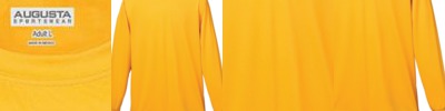 * 100% polyester wicking knit with color secure(r) technology that helps prevent dye migration * Wicks moisture * Non-branded tagless label * Set-in sleeves * Safety Yellow is ANSI certified