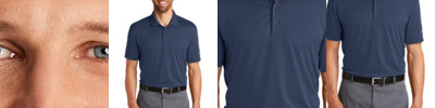 4.1 oz./yd2 / 139 gsm, 100% polyester piqué with moisture-wicking, anti-microbial and UV protection performance; Matching flat-knit collar; Heat-seal label; Side slits; Two-button placket;
