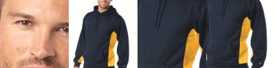 Athletic cut hoodie stands out on the field with contrast color underarm panels and shoulder inserts.