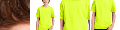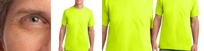 - Dark heather, safety green, safety orange 50/50 cotton/poly.