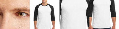 5.3-ounce, 100% cotton 90/10 cotton/poly (Sport Grey/Black) Recycled, high-performing black tear-away label Contrast color set-in collar and 3/4 raglan sleeve Single-needle topstitched back neck Double-needle sleeve hems and bottom hem Classic fit tubular body