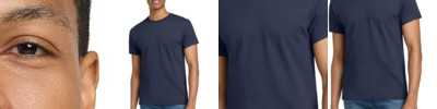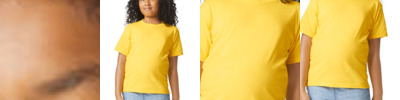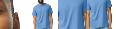 4.6-ounce, 60/40 ring spun cotton/polyester CVC blend Subtle heather texture on all colors except Pitch Black and White Recycled, high-performing black tear-away label Softstyle's high stitch density fabric offers a smoother printing surface Narrow width, rib collar Taped neck and shoulders Modern classic fit, seamless body Double-needle hem