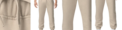 Relaxed fit Waistband with interior dyed-to-match drawcord Interior brushed fleece Side seamed Side pockets Interior encased elastic leg cuff Tear-away label 10-ounce, Airlume 60/40 combed and ring spun cotton/polyester fleece Athletic Heather: 94/6 Airlume combed and ring spun cotton/polyester