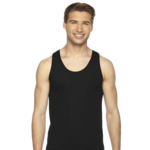 American Apparel Unisex 4.3 Ounce Fine Jersey Tank. 4.3 ounces, 100% Ring Spun Cotton (Heather Grey contains 10% polyester. ) Relaxed fit, side seamed body. Binding at neckline and armholes. 100% cotton thread on color White. Recycled tear away label.