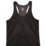Badger Adult Tonal Blend Racerback Tank. 100% Polyester moisture management antimicrobial performance fabric. Single-needle bound neck & armhole. A-line body - Double-needle hem. Badger heat seal logo on center back neck.