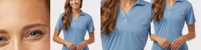 A4 Ladies 4.0 Ounce Short Sleeve V-Neck Birds Eye Mesh T-Shirt. 100% Polyester Textured Mesh, 4.0 ounces per yard. Moisture wicking, odor resistant, stain release. Reflective A4 on left bottom hem. V-neck. Ships from Vernon, CA.