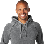 J America Adult 10.0 Ounce Premium Fleece Hooded Pullover. 10.0 ounce, 80/20% Ringspun Cotton/Polyester fleece fabric. Jersey lined hood with flat drawcord. 1x1 rib. Spandex blend rib waist and cuffs. Front pouch pocket. Coverstitched throughout.