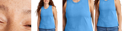 Feel your impact in this crazy-soft sustainable muscle tank that has had its total carbon footprint reduced and uses an equivalent of up to 6 recycled plastic water bottles. 4.2-ounce, 50% recycled polyester/25% organic ring spun cotton/25% modal, 30 singles This product's carbon footprint has been measured and reduced through a combination of preferred materials and investing in carbon offset projects through the ClimeCo Certified Product Program 1x1 rib knit neck Back neck taping Relaxed fit Side seams Recycled tear-away label