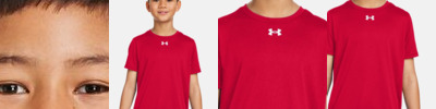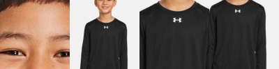 - UA woven label centered on left sleeve hem and UA heat seal center back neck