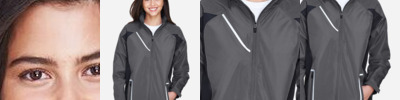 - Center front coil zipper closure with shock cord at hood, and self-fabric chin guard
