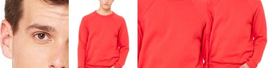 - Triple-needle coverstitched raglan sleeves, cuffs, side inserts and bottom band