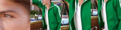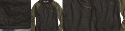 - Raw edge seams around hood opening, pocket seams and neckline