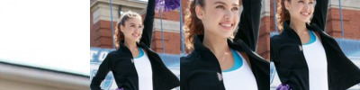 - Quality spandex blend rib-knit trim and cuffs