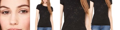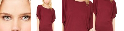 - Contrast color three-quarter sleeves and three-eighths inch neck binding