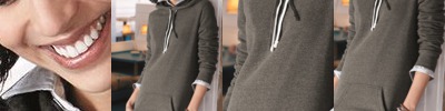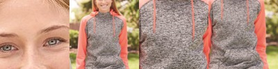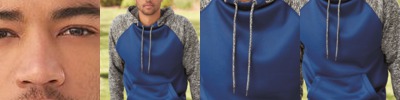 - Charcoal fleck body with contrast-color solid hood, drawcord and sleeves