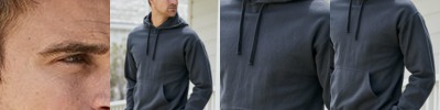 - 9 oz./yd² (US) 15 oz./L yd (CA), 80/20 ring-spun cotton/polyester blend with 100% cotton face, 30 singles