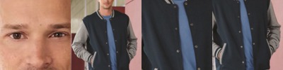 - Contrast-color, topstitched self-fabric sleeve stripes