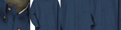 - Two-piece, lined, banded, topstitched, button-down collar