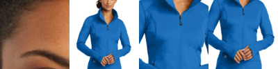 STAY-COOL WICKING LAYERABLE WARMTH STRETCH FLATLOCK SEAMS FOR COMFORT REFLECTIVE DETAILS 6.7-ounce, 91/9 poly/spandex jersey with stay-cool wicking technology Lightly brushed interior Reflective OGIO heat transfer label for tag-free comfort Zip-through cadet collar with molded cord pull Reflective O heat transfer at center back Raglan sleeves with shaped cuffs Reflective stacked O heat transfers on sleeves Front pockets Drop tail hem Reflective O heat transfer at front left hem