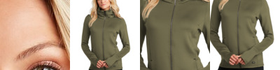 LAYERABLE WARMTH STRETCH STAY-COOL WICKING REFLECTIVE DETAILS 7.4-ounce, 85/15 poly/spandex with stay-cool wicking technology Reflective OGIO heat transfer label for tag-free comfort Oversized zip-through cowl neck collar Front seaming for shaping Black reflective O heat transfer on back right shoulder Pleating on back Metaluxe ® zipper Engraved matte black metal O zipper pull Black reflective O heat transfer on left pocket Thumbholes for warmth