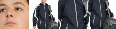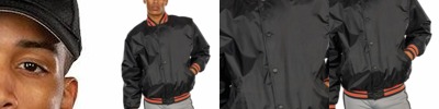 - Spandex blend ribbed-knit inner collar, cuffs and waistband