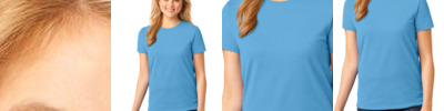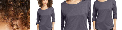 Primed for 24/7 comfort, a proprietary finish gives our tri-blend tee unbelievable softness at a great value. 4.5-ounce, 50/37/13 poly/cotton/rayon 1x1 rib knit neck Shoulder to shoulder taping Removable label for comfort and relabeling Side seamed with a contoured body for a feminine fit