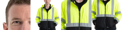 8 oz./yd², polyester softshell bonded to micro fleece Water-and wind-resistant 2" reflective tape Breathable Zippered front pockets ANSI/SEA 107-2015 Type R Class 3 Certified