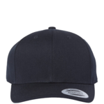 Yupoong CVC Snapback Cap. 60/40 cotton/poly fabric. Structured cap. Mid-profile, Six panels. 3.5 crown. Permacurv visor. Snap back closure.