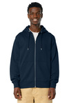 A premium zipped hoodie with a classic look. Organic and recycled fabrics blend beautifully, offering cozy warmth with refined details that stand out from the crowd. 10.3-ounce (350 GSM) 80% organic combed ring spun cotton/20% recycled polyester brushed 3-end fleece, cotton face Double self-fabric lined hood Dyed-to-match round drawcords with metal tips Metal eyelets Herringbone back neck taping Self-fabric half moon at back neck Exposed metal zipper 1x1 rib knit cuffs and hem Double-needle topstitch on armholes, cuffs and hem seams Front pouch pockets 100% recycled polyester tear-away label Colors up to 5XL: White, Black, French Navy, Heather Grey, Natural Raw, Stargazer Modern medium fit: Designed for a roomier fit, opened up across the chest and shoulders.