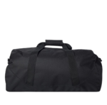 Liberty Bags 600 Denier Large Square Duffel. 600 denier polyester. 50% recycled material. Zippered main opening with rain cover over the zipper. Detachable/adjustable wide shoulder strap, front zippered pocket. Reinforced bottom. Color matching hardware. Quick close feature handles. Non-branded label/tag. 23.5 x 11.5 x 11.
