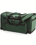 Liberty Bags 600 Denier Explorer Large Fancy Duffel Bag. Multi pocket duffel with U-shaped opening in main compartment. 2 large side pockets with zipped down feature for easy packing and access. Adjustable/detachable padded shoulder strap and large gusset front pocket for additional storage. Black contrasting webbing, quick close feature handles. 600 denier polyester. Non-branded label/tag. 27 x 13 x 14.