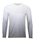 Paragon Adult Montauk Obre Long Sleever T-shirt. Montauk is a fully sublimated performance long sleeve tee. This one color contrasting Shark print gradually fades into a solid colored body. A subtle print which makes the perfect canvas for adding your decoration to it! Moisture wicking and anti-microbial features keep you cool and dry. Fabric is wrinkle resistant and gives you a UPF50+ sun protection rating. ParagonXP tear away label, hemmed sleeves and bottom. 4.1 oz