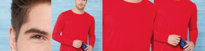 - Double-needle 3/4" collar, sleeve and bottom hems