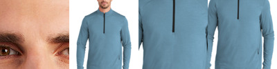 7.7-ounce, 89% recycled polyester/11% spandex interlock knit (solids) 7.7-ounce, 81% recycled polyester/8% polyester/11% spandex interlock knit (heathers) This product's carbon footprint has been measured and reduced through a combination of preferred materials and investing in carbon offset projects through the ClimeCo Certified Product Program Snag-resistant Moisture-wicking UPF rating of 50+ Forward shoulder Dyed-to-match, recycled, molded zipper with dyed-to-match rubber-tipped pull Angled front pockets with stitching detail Self-banded cuffs and hem Tag-free label